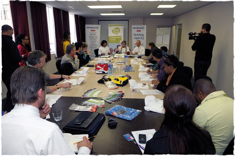 Kurz nach dem Ende der Fußballweltmeisterschaft, am 19.07.10, fand in Kapstadt eine Pressekonferenz zum Launch unserer Initiative in Südafrika statt. Im Presseraum von Impumelelo Innovations Award Trust, unserer Partnerorganisation vor Ort, wurde goals4kids der südafrikanischen Presse vorgestellt. Dort konnten neben der Premierministerin von Western Cape und Schirmherrin von goals4kids, Helen Zille sowie der Geschäftsführerin von Impumelelo, Rhoda Kadalie, auch der Vorsitzender und der Geschäftsführer von goals4kids, Hans Ulrich Gruber und Tomas Kanovsky, die zum Startschuss des Projekts nach Kapstadt gereist waren, die zahlreichen Fragen der Medienvertreter beantworten.
