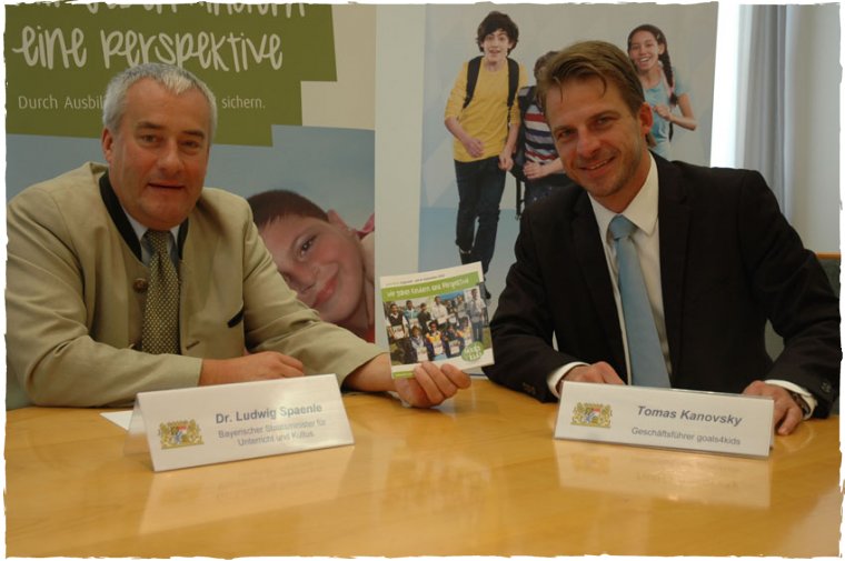 “The German Women’s Team ensured during the World Cup held in Germany with seven scored goals that children from socially disadvantaged families from Bavaria have the chance of additional support,“ said the Minister for Culture and Sports Dr. Spaenle. Bavaria is the first German state in which goals4kids is active. Seven goals were scored for Germany during the Soccer World Cup – but goals4kids topped up that number to ten educational sponsorships. These sponsorships will be awarded to children from all over Bavaria. The Ministry for Culture will help goals4kids with the task of choosing the children.
