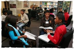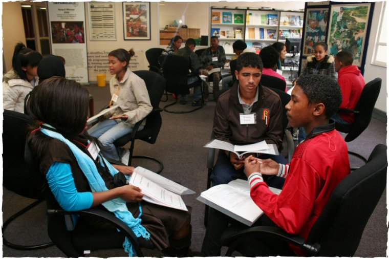 The first goals4kids life skills workshop in the office of our partner Impumelelo was well attended and ran successfully. Only two children were absent. The other fourteen children were fetched by bus and driven from Atlantis to Cape Town. The session started at 9am and workshop facilitator, Patti Bruyns, provided each child with their own name tag and reading materials.